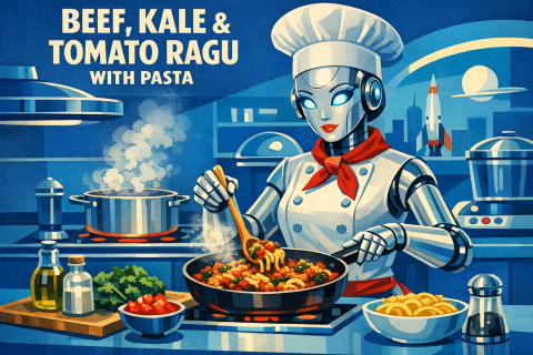 Olive-Studded Beef Meatballs in Tomato-Garlic Sauce over Rice