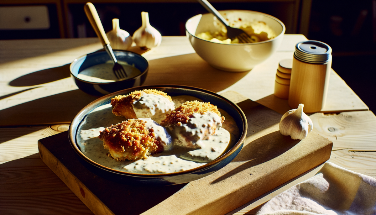 This is a superbly satisfying supper. The crispy breaded chicken thighs basted with creamy, tangy sour cream sauce create a mouth-watering dish. Pair it with some pasta or rice on the side for a complete, hearty meal.