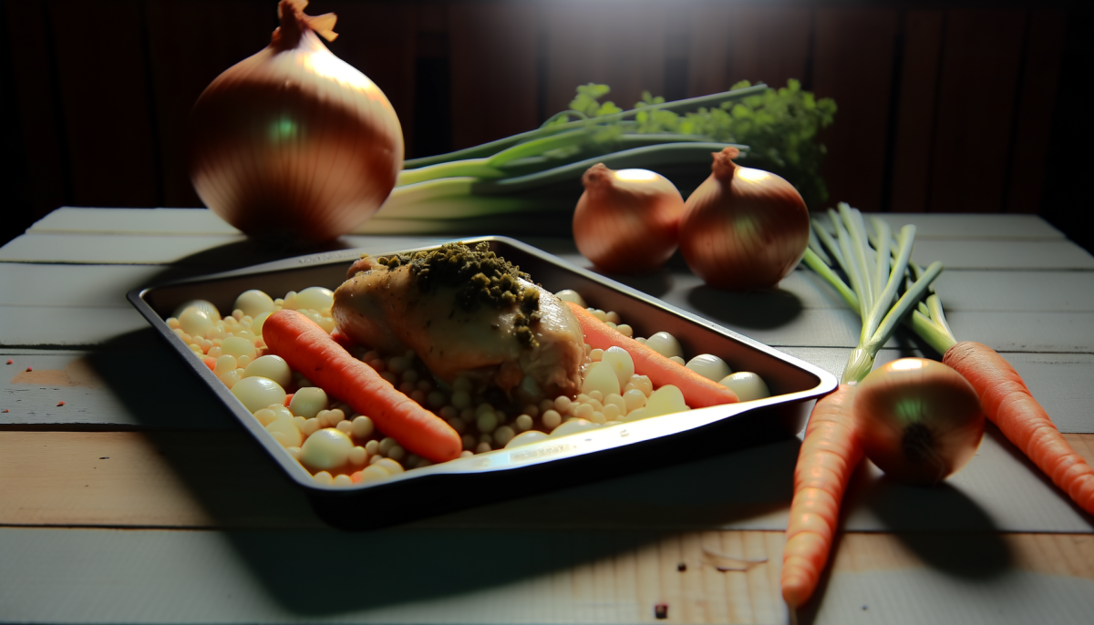 4. Arrange the chicken thighs on a baking sheet, and surround with the seasoned onions and carrots.