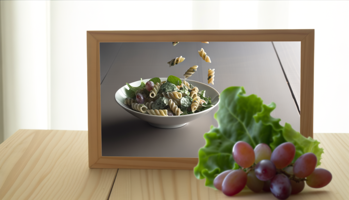 3. Add the salad greens, grapes, and cooled pasta to the bowl with the dressing.
