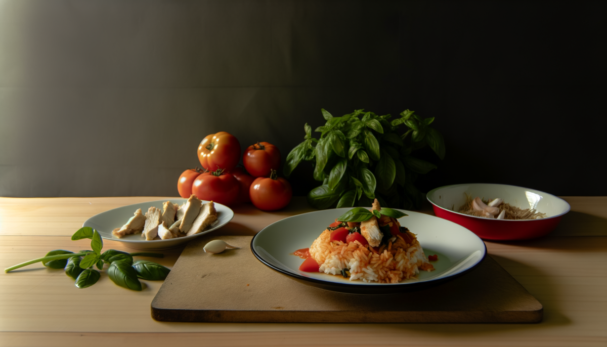 9. Once the rice is done, fluff it with a fork and gently stir in the chicken and chopped basil.