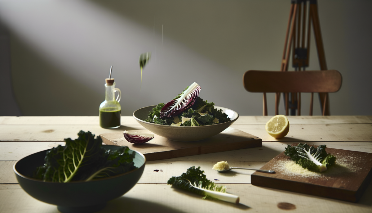 2. Place kale and radicchio in a large salad bowl.